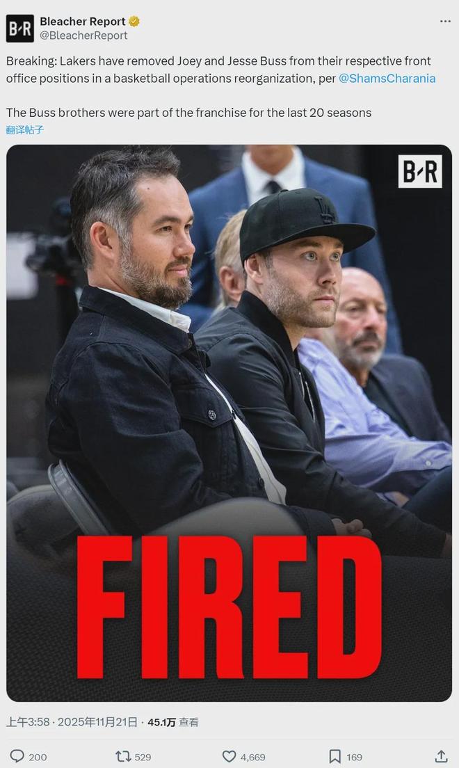湖人这一波操作还不仅限于两个小巴斯,他们把整个球探部门的员工全部解雇了,一个不剩。